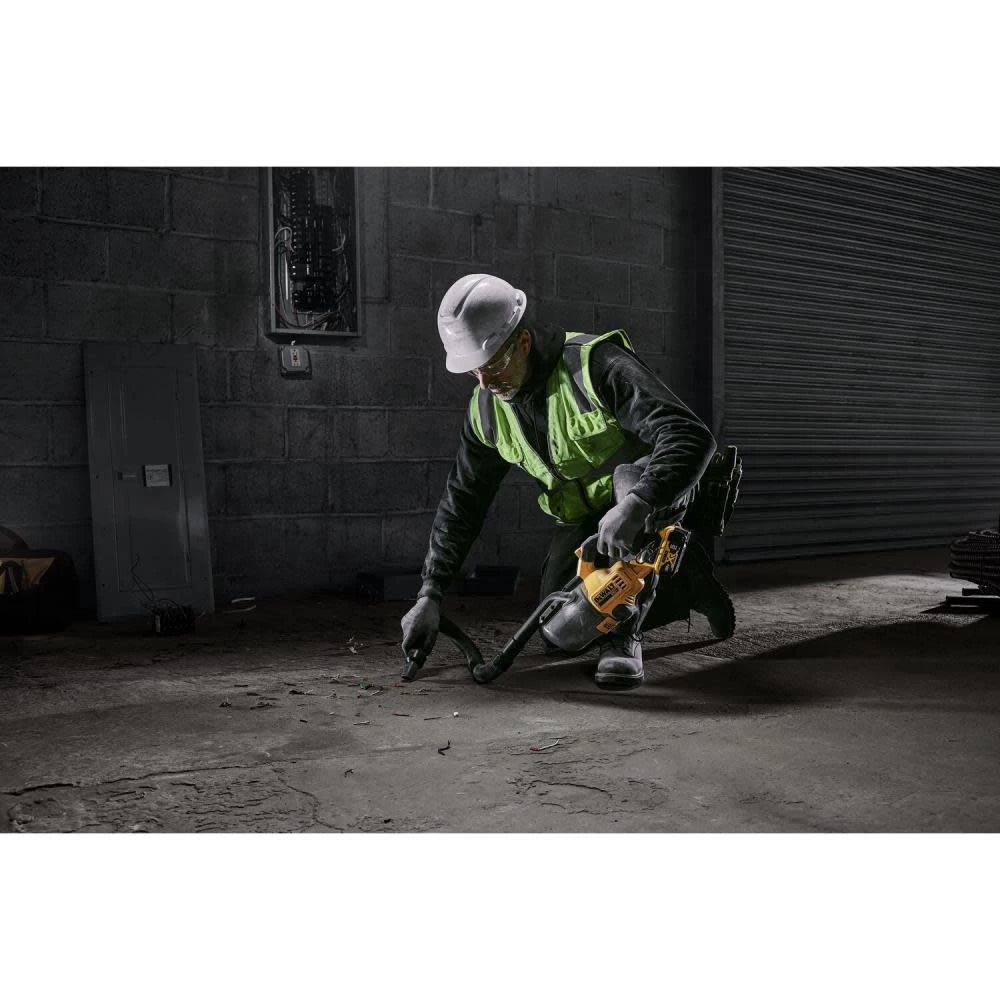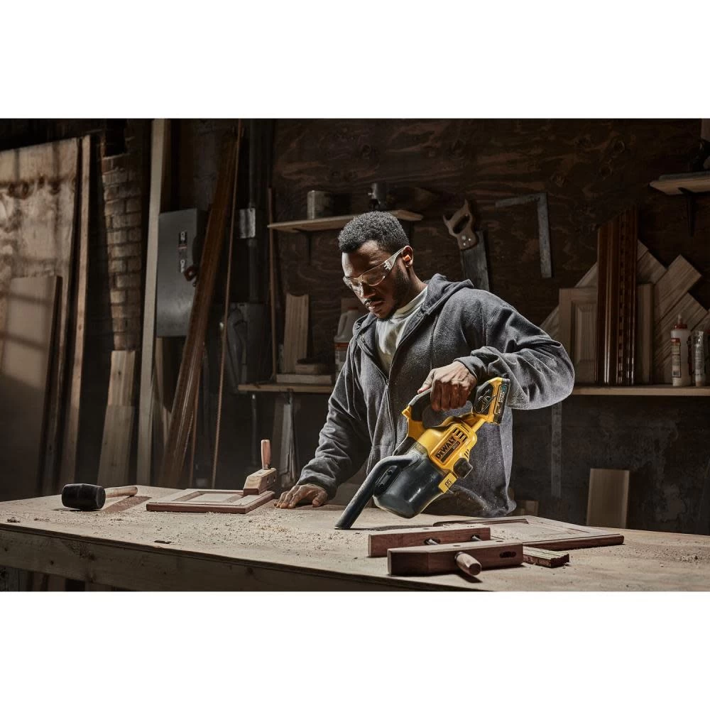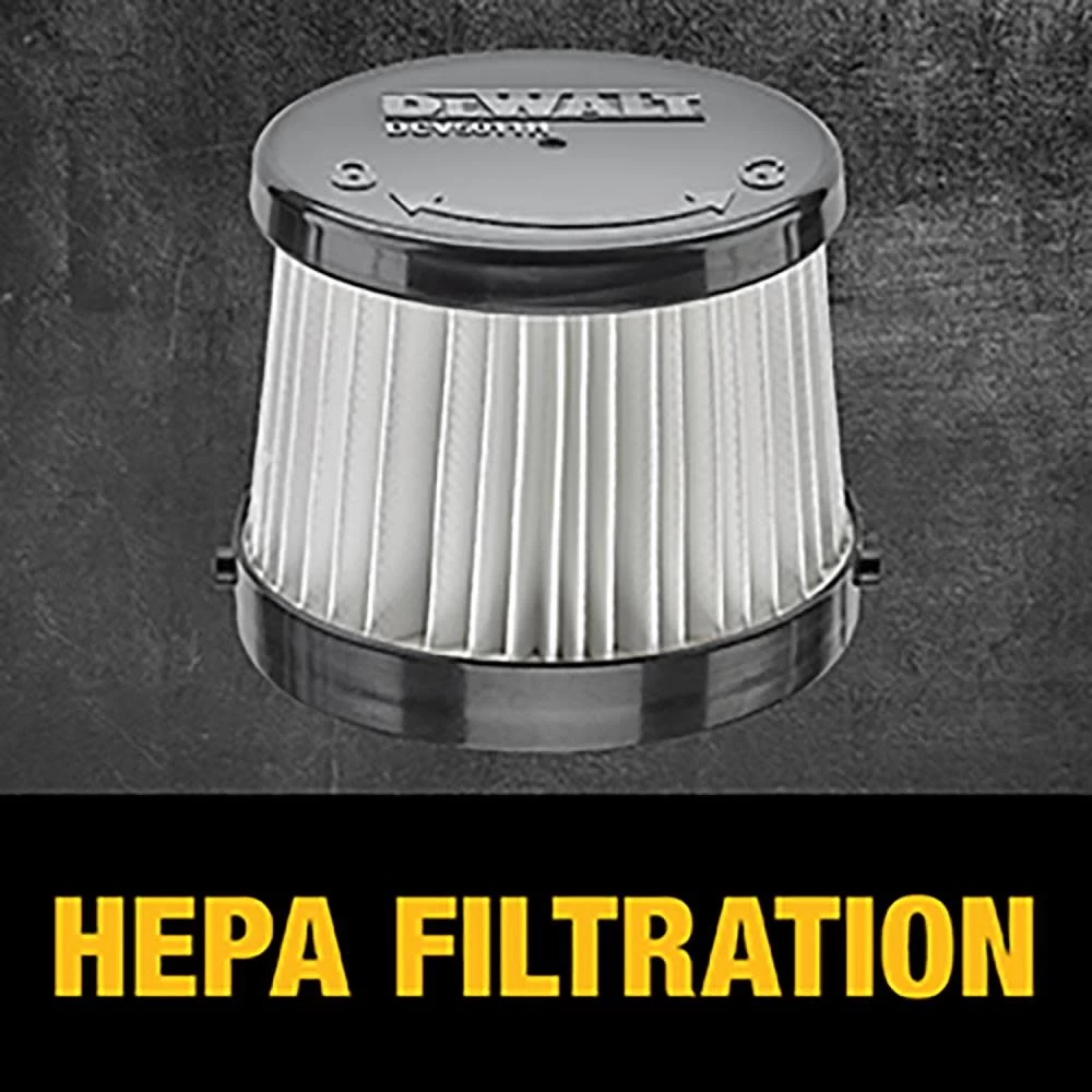 The DEWALT 20V Cordless Dry Hand Vacuum (Tool only) is a jobsite cleaning solution that provides users with powerful performance (46 CFM) to pick up common jobsite debris ranging from drywall, dust, to small screws and nails. This versatile vacuum comes with 6 different cleaning attachment accessories to tackle any cleaning job from floor level to overhead. The hand vacuum can be used to handle smaller messes or used in combination with the extension tube and floor accessory to clean up floor areas. A bright LED light illuminates the darkest areas. A HEPA Filter allows for clean efficient cleanup of fine dust and drywall and follows OSHA Table 1 Compliance under housekeeping rules. It comes fully equipped with an extension tube, floor nozzle, flexible hose, crevice nozzle, gulper brush, round brush, belt hook, accessory holder, and HEPA filter. Up to 21.4 minutes of runtime per charge using DCB205 battery (sold separately). Can fill up to 15 tank fills per charge using DCB205 battery (sold separately).