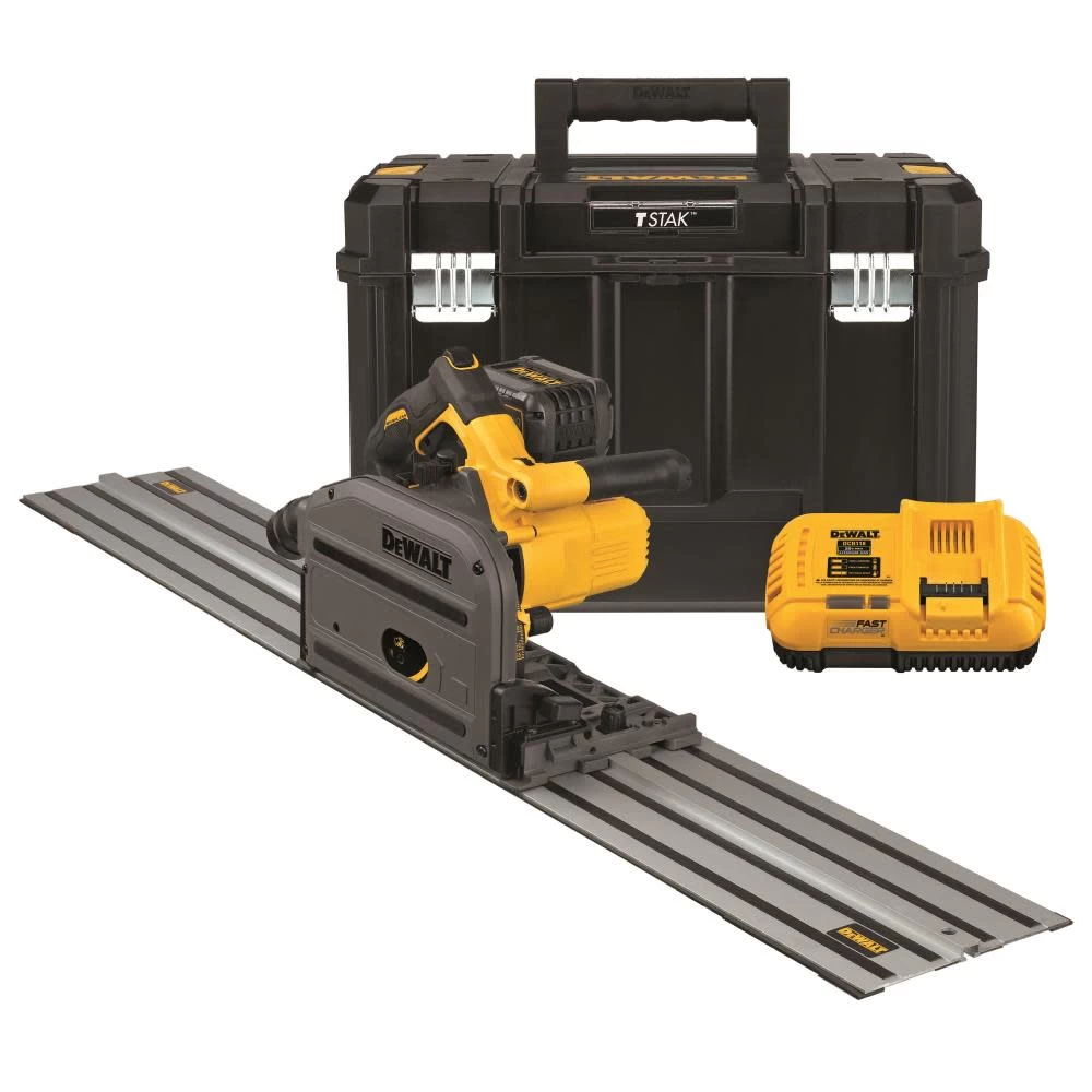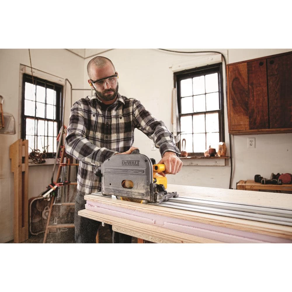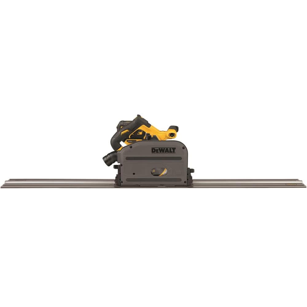 The DCS520 60 V MAX* 6-1/2 In. TrackSaw kit easily Powers through hardwoods up to 2-1/8 In. thick. Features straight plunge mechanism for optimal ergonomics. For use with TrackSaw cutting system to deliver precise, straight, splinter-free cuts.