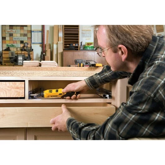 The DCF680N1 8V MAX Gyroscopic Screwdriver 1 Battery Kit is ideal for achieving precision, speed, and control. Adjustable two-position handle allows for operation in either in-line or pistol-grip to suit the professional’s needs.