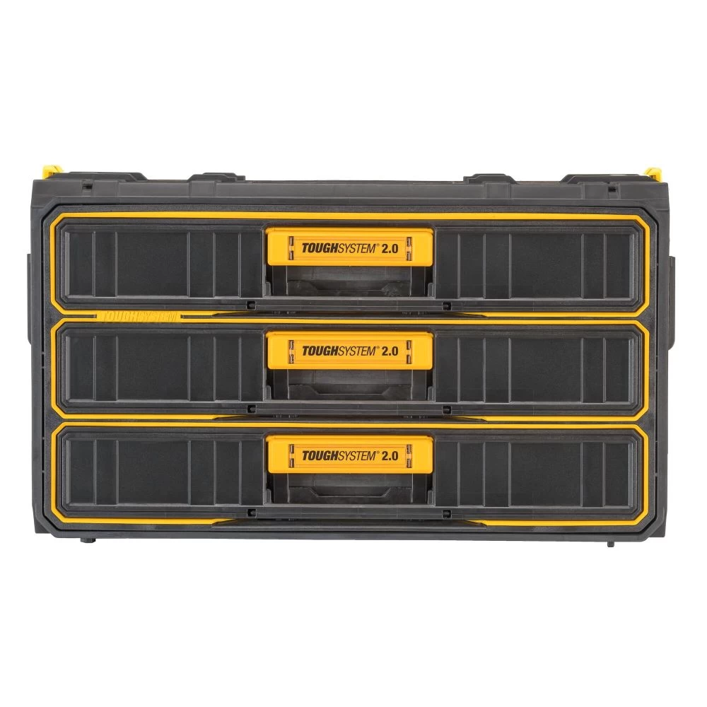 This three deep shallow drawer gives instant access to tools without the removal of other modules. The ball bearing drawer sliders allows for smooth, reliable opening and high levels of durability. Thanks to the automatic stacking latches there is an easy connection to the others ToughSystem units and tool boxes.